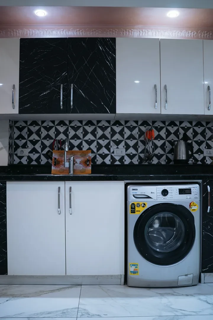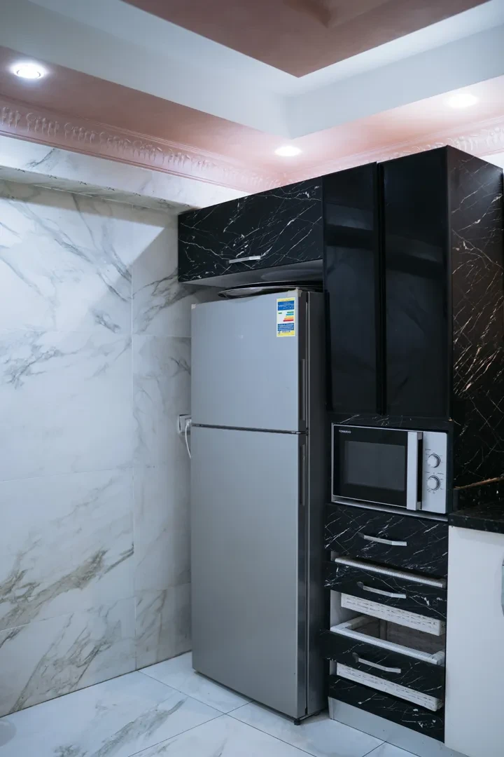 Enjoy the comfort of a spacious living room, a refined dining area, and a fully equipped kitchen fitted with a microwave and washing machine — ideal for extended stays or entertaining. The private balcony provides a serene spot for relaxation or casual gatherings.